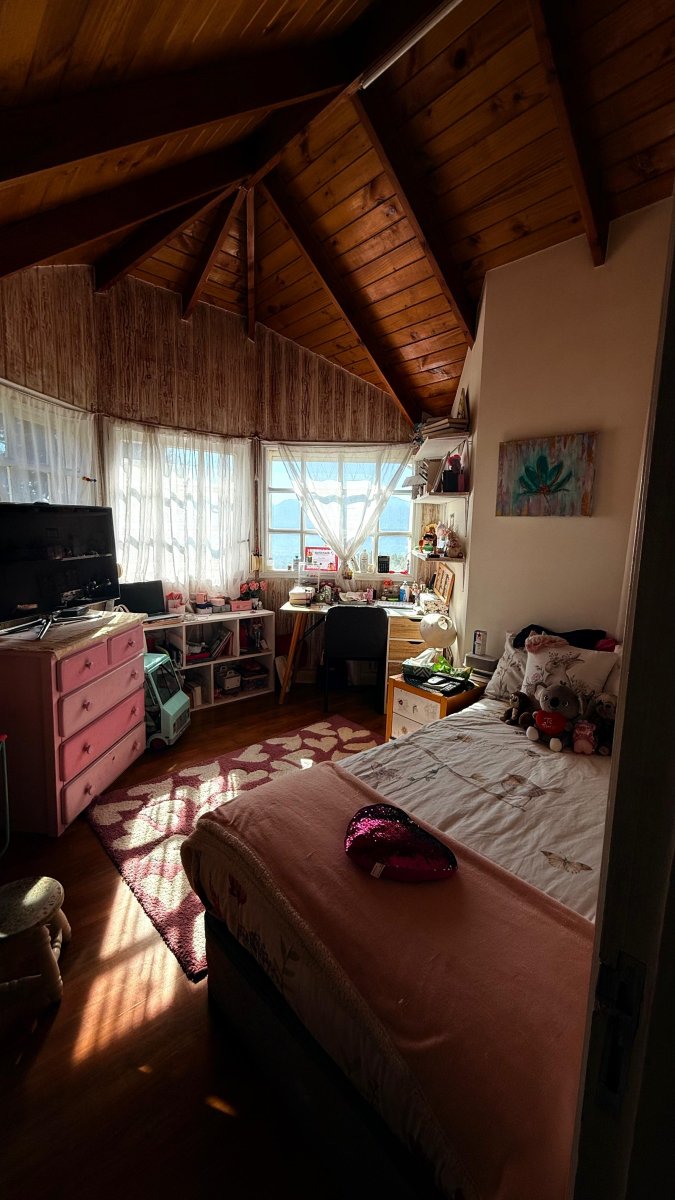 • Segundo piso: 2 dormitorios con vista al lago y al cerro Los Calabozos, baño, pequeña sala u oficina, bodega.